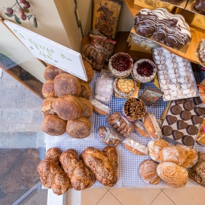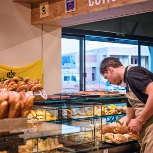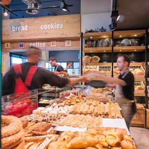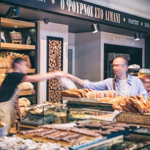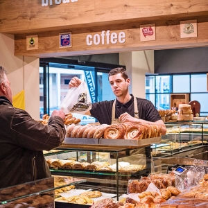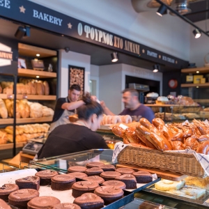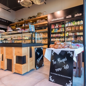 Οι πάντα πρόσχαροι εργαζόμενοί μας θα σταθούν αρωγοί στις επιθυμίες σας και θα σας ακούσουν με προσοχή. Θα βρείτε εδώ πάνω από 25 είδη ψωμιού, πεντανόστιμα γλυκά και αρτοποιήματα, κριτσίνια και βουτήματα, καφέδες, αγνό παγωτό και γενικότερα οτιδήποτε ζητήσετε.